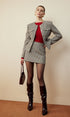 Kazayağı Desenli Düğmeli Kısa Ceket