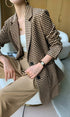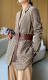 Kemerli Pencere Desenli Yırtmaçlı Blazer Ceket