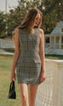 Kazayağı Desenli Tweed Fermuarlı Elbise
