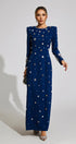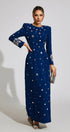 Idalia Mavi Pırlanta Uzun Kollu Uzun Elbise