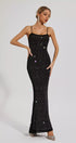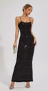 Indie Siyah Süslenmiş Örgü Maxi Elbise