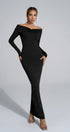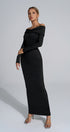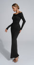Isabella Siyah Uzun Kollu Bodycon Maxi Elbise