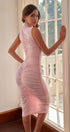 Ivana Pembe Dantelli Kolsuz Midi Elbise
