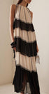 Jean Boyundan Bağlamalı Katlı Maxi Elbise