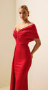 Jersey Katı Düşük Omuzlu Maxi Elbise