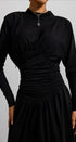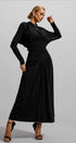 Jersey Katı Dantelli Uzun Kollu Maxi Elbise