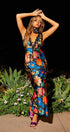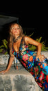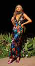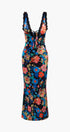 Jill Baskılı V Yaka Dantel Maxi Elbise