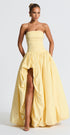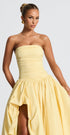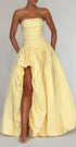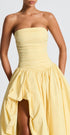 Straplez üst kısmı vücudu sararken, drapeli tasarımı feminen bir görünüm kazandırır. Gösterişli balon etek kesimi ve cesur yırtmaç detayıyla Jillian, özgüvenin ve zarafetin simgesi. Yaz düğünleri, mezuniyetler veya özel kutlamalar için göz alıcı bir seçim.