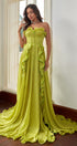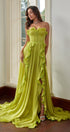 Jocasta Yeşil Fırfırlı Korse Uzun Elbise