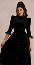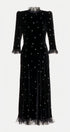Jolie Diamante Fırfırlı Kadife Maxi Elbise