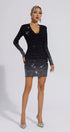 Journi Siyah Pırlanta Uzun Kol Mini Elbise