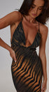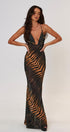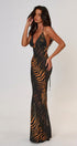 Juneen Baskılı Sırtı Açık Slip Maxi Elbise