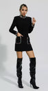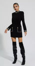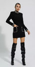 Karina Siyah Pırlanta İşlemeli Mini Elbise
