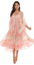 Katie Mesh Degrade Pembe Midi Uzun Elbise