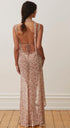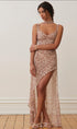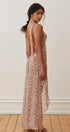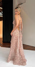 Kay Baskılı Sırtı Açık Yırtmaçlı Transparan Maxi Elbise
