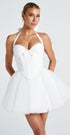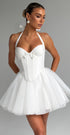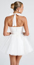 Büyüleyici bir zarafet, keskin bir siluetle buluşuyor. Keely Corset Mini Dress, balerin tütüsünü anımsatan tül eteği ve vücuda oturan korsaj üstüyle cesur bir romantizm sunuyor. İnce halter bağlama detayı ve göğüs kısmındaki fiyonkla zarafeti yeniden tanımlayan bu elbise, beklenmedik anlarda başrol oynaman için tasarlandı.