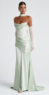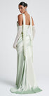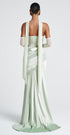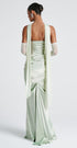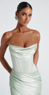 Işığın her kıvrımda dans ettiği Kensington Maxi Dress, pastel zarafeti ve akışkan formuyla göz kamaştırıyor. Drapeli straplez üst bölgesi, bele oturan korsaj yapısı ve kuyruklu saten eteğiyle her davete bir kırmızı halı hissi katıyor. Mint tonundaki eşsiz duruşuyla romantik ve sofistike bir görünüm arayanlar için tasarlandı. Aynı tonda fular ve tül eldiven ile tamamlandığında unutulmaz bir etki bırakır.