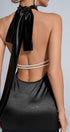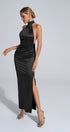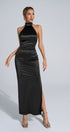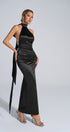 Kevin Boyundan Bağlamalı Saten Maxi Elbise