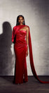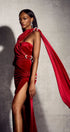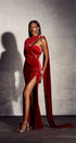 Kristin Asimetrik Pelerin Kadife Maxi Elbise