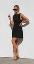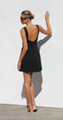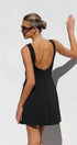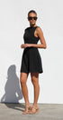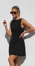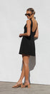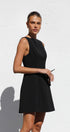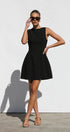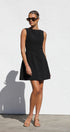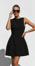 Siyah Kyrie Elbise ile cesur bir ifade yaratın. Bu özel dikim, kolsuz mini elbise, modern bir zarafet dokunuşu için sofistike bir kayık yaka ve çarpıcı, alçak sırt kısmına sahiptir. A kesim etek, hoş bir siluet sağlayarak doğal şeklinizi geliştirir.