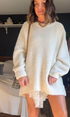 Dantelli Dökümlü Mini Elbise Ve Teddy Kazak