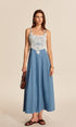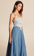 Dantel Detaylı Kot Askılı Maxi Elbise