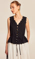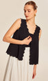Dantel Detaylı Dalgalı Kenarlı Düğmeli Bluz