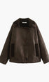 Yaka Suni Deri Sıcak Ceket
