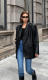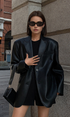 Lapel Detaylı Deri Blazer