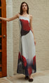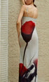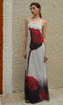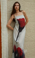 Şeffaf Büyük Çiçek Desenli Askılı Uzun Elbise