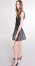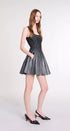 Kare yakalı ve iki cepli bu kısa, streç elbiseyle cesur bir duruş sergileyin. Payetli çizgilerle vurgulanan yapılandırılmış kesimi, karşı konulamaz bir hacim oyunu için geniş bir eteğe kadar uzanıyor.
