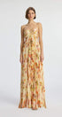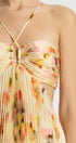 Leila Boyundan Bağlamalı Kesik Pileli Maxi Elbise
