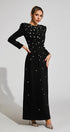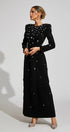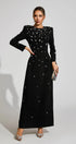Lenore Siyah Pırlanta Uzun Kollu Uzun Elbise