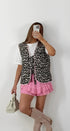 Bu şık bahar yeleği, göz kamaştırıcı bir V yakaya ve şık hayvan desenli tasarıma sahiptir; gardırobunuza cesur bir dokunuş katmak için mükemmeldir. Büzme ipli dar bel, silüetinizi vurgulayarak hem şık hem de rahat, size özel bir uyum sağlar.