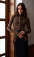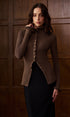 Kıvırık Kenar Metal Düğmeli Yırtmaçlı Hırka