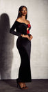 Lillian Düşük Omuzlu Kadife Maxi Elbise
