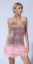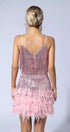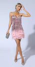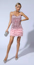 Lilliana Pembe Tüy Püskül Payet Mini Elbise