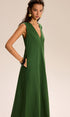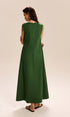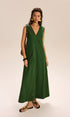 Keten Ve Pamuklu Cepli V Yaka Uzun Elbise