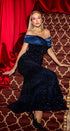 Lirael Payet Saten Düşük Omuzlu Uzun Elbise