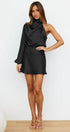 En iyi parti parçanız olan Libby Mini Elbise ile dikkatleri üzerinize çekin. Bu şık mini elbise, dramatik balon kollu, yüksek yakalı ve yemyeşil saten görünümlü kumaştan zarif dökümlü detaylara sahip tek omuzlu bir tasarıma sahiptir.