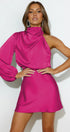 En iyi parti parçanız olan Libby Mini Elbise ile dikkatleri üzerinize çekin. Bu şık mini elbise, dramatik balon kollu, yüksek yakalı ve yemyeşil saten görünümlü kumaştan zarif dökümlü detaylara sahip tek omuzlu bir tasarıma sahiptir.