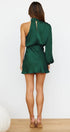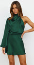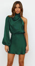 En iyi parti parçanız olan Libby Mini Elbise ile dikkatleri üzerinize çekin. Bu şık mini elbise, dramatik balon kollu, yüksek yakalı ve yemyeşil saten görünümlü kumaştan zarif dökümlü detaylara sahip tek omuzlu bir tasarıma sahiptir.