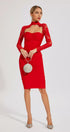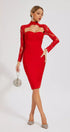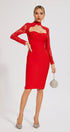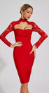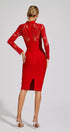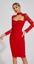 Liv Kırmızı Kolları Dantelli Bandaj Midi Elbise