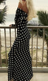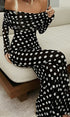 Uzun Kollu Omuz Açık Polka Nokta Desenli Uzun Elbise