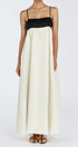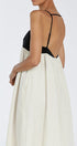 Bol Askılı Siyah Beyaz Patchwork Maxi Elbise