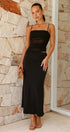 Bu şık mini elbise, ayarlanabilir spagetti askılara ve silüetinizi vurgulayan göz alıcı kare yakaya sahiptir. Şeffaf bel, çekici bir dokunuş katarken, yan kesik detayı çağdaş ve sıra dışı bir görünüm yaratıyor.