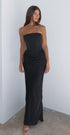 Siyaha Aşık Maxi Elbise, askısız tasarım, tutma bandı, balenli korse, oturan korse, süper yumuşak, ipeksi kumaşla dökümlü etek tasarımı, ayarlanabilir bağcıklı bağcıklı sırt tasarımı, kanca ve gözlü gizli fermuar ve şeffaflığı önlemek için astarlı kumaş içerir. Bu resmi elbiseyi göz alıcı bir görünüm için parlak aksesuarlar ve topuklu ayakkabılarla eşleştirin!