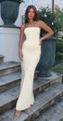 Kalp durdurucu. Love This Feeling Maxi Elbise Butter, askısız tasarım, tutma bandı, balenli korse, oturan korse, süper yumuşak, ipeksi kumaşla dökümlü etek tasarımı, ayarlanabilir bağcıklı bağcıklı sırt tasarımı, kanca ve gözlü gizli fermuar ve şeffaflığı önlemek için astarlı kumaş içerir. Bu resmi elbiseyi göz alıcı bir görünüm için parlak aksesuarlar ve pleksiglas topuklu ayakkabılarla eşleştirin!