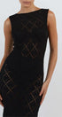 Maxi uzunlukta, vücuda oturan örgü elbisemizle tarzınızı yükseltin. Orta derecede esnek polyesterden üretilen bu ürün şık ve rahat bir uyum sunar.