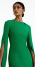 Bu sofistike maksi elbise, klasik zarafeti modern stille birleştiren sivri yakalı ve yere kadar uzanan yırtmaçlı kollara sahiptir. Tencel ve polyester karışımından üretilen bu ürün, orta düzeyde esnekliğe sahip, hoş bir uyum sunar ve daha fazla konfor için tamamen astarlıdır.